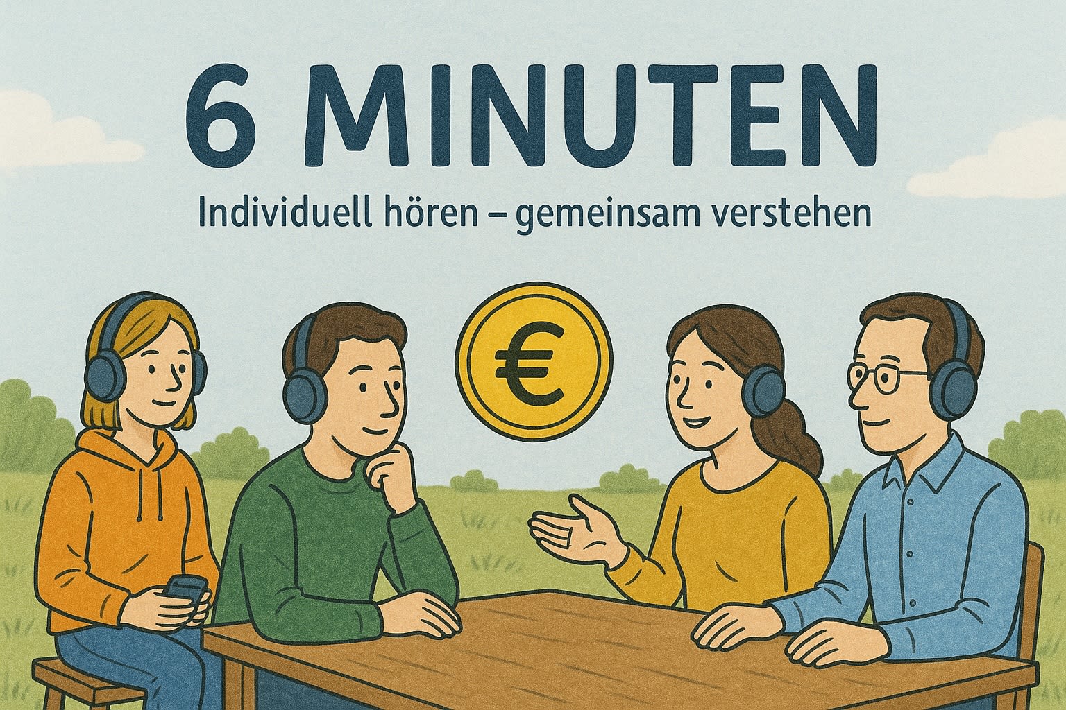 Das kurze Audioformat von rund sechs Minuten dient als Impuls für gemeinsames Lernen und Denken. Jede Teilnehmerin und jeder Teilnehmer hört den Beitrag zunächst individuell. Dadurch entsteht Raum für eigene Gedanken, Fragen und Assoziationen -- eine wichtige Voraussetzung für vertieftes Verständnis.